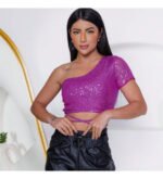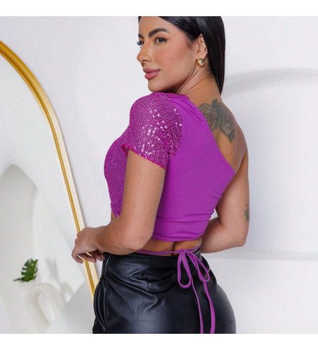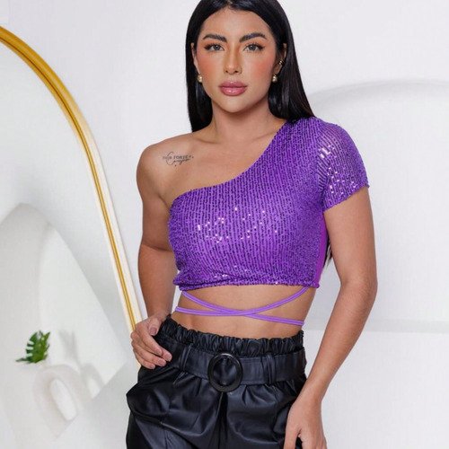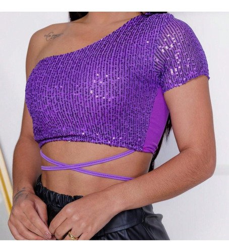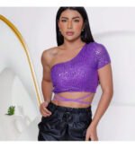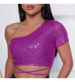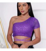 Cropped Feminino Amarração Manga Curta Elastano Estiloso